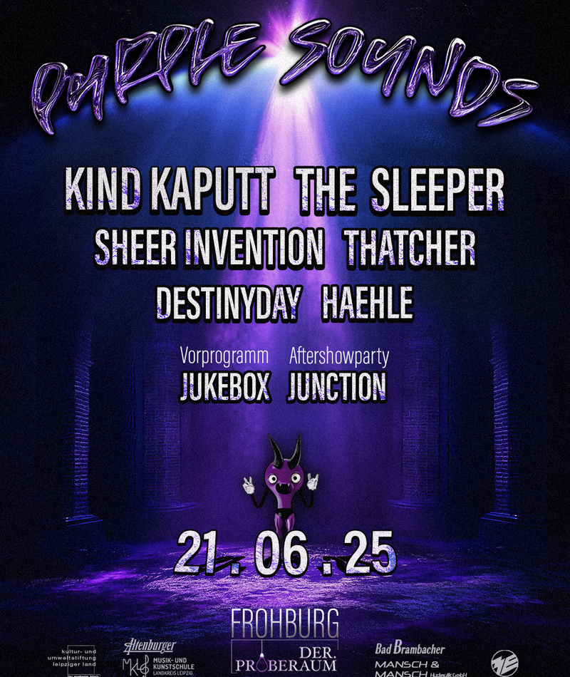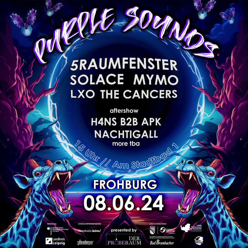 15 Uhr haben die Türen im Jahr 2024 geöffnet. The Cancers aus Rochlitz haben bei sommerlichen Temperaturen ordentlich eingeheizt und das Purple Sounds 2024 eröffnet. Weiter ging es mit MYMO aus Berlin, gefolgt von LXO aus Leipzig und SOLACE aus Dresden. 5 Raumfenster waren der krönende Abschluss unserer Livebands, bevor es mit H4Ns, APK und Nachtigall ins Finale ging. 💜